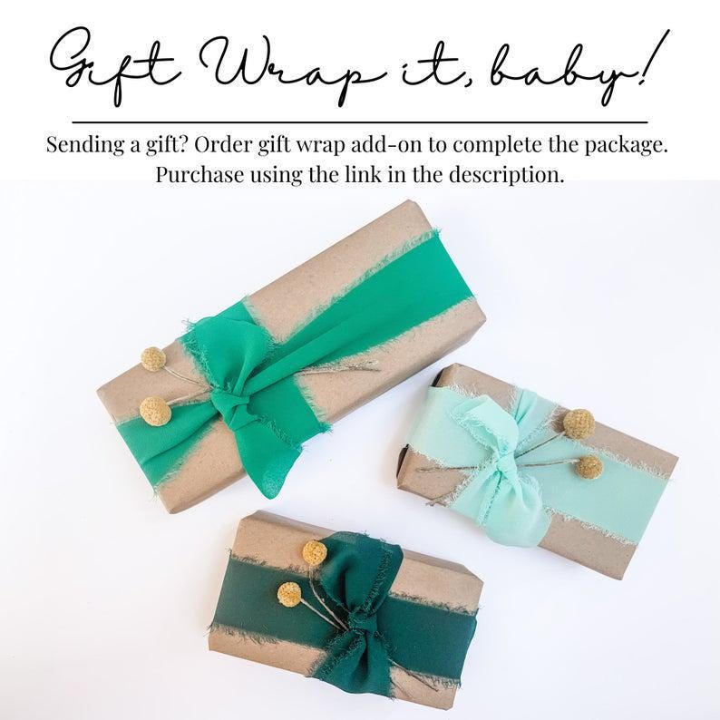 You can add professional gift wrapping at checkout or purchase the chiffon ribbon here: https://etsy.me/3QzqVSA