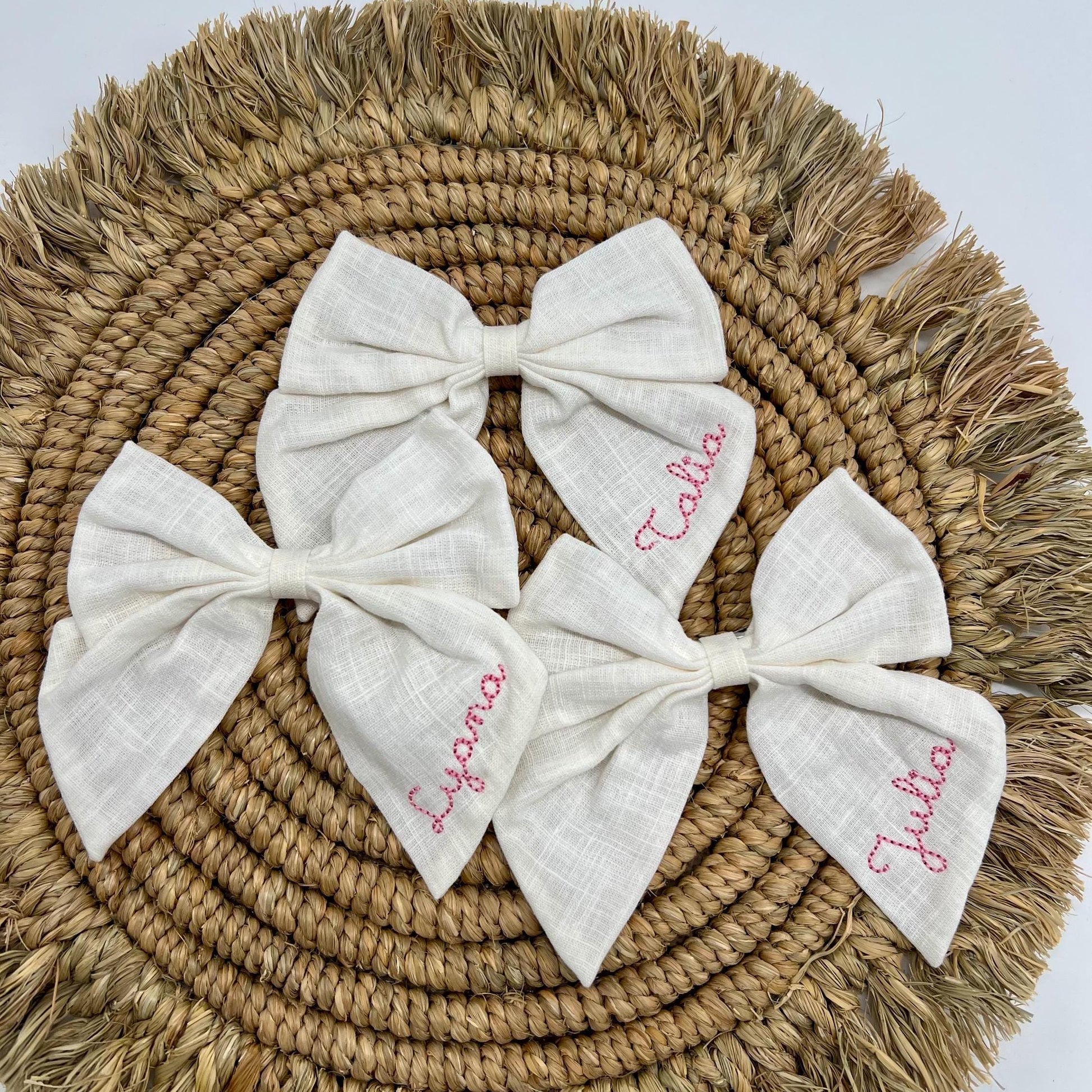 Personalized Bow with Name Linen Hair Bow Embroidered Hair Clip for Girls Clip for School Bow with Custom Name Bow Girls Hair Bow