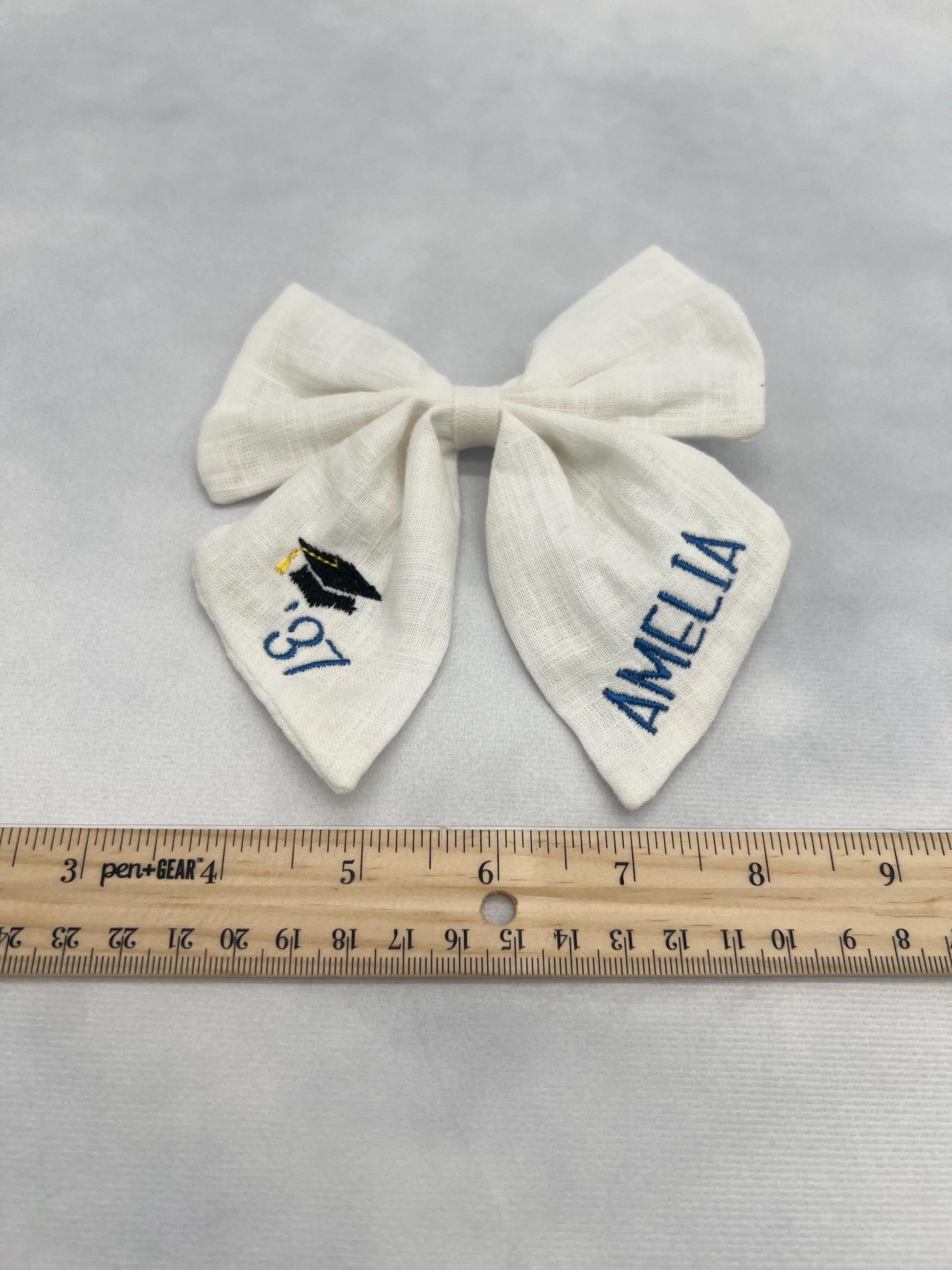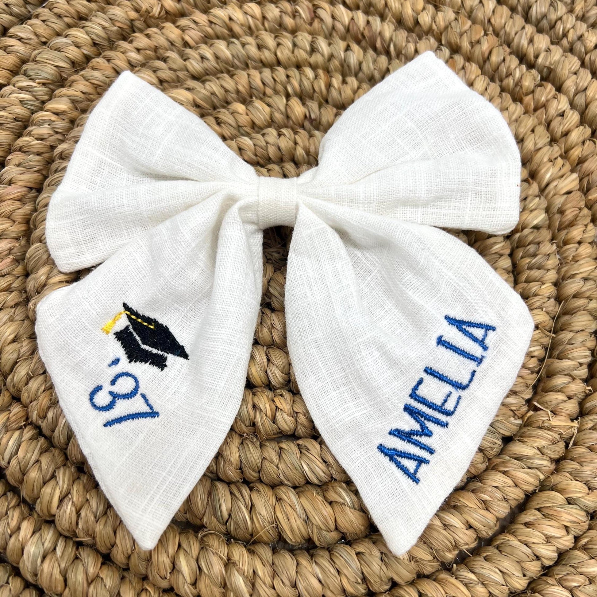 π Celebrate graduation in style with a Personalized Embroidered Bow featuring the graduateβs name and class year!