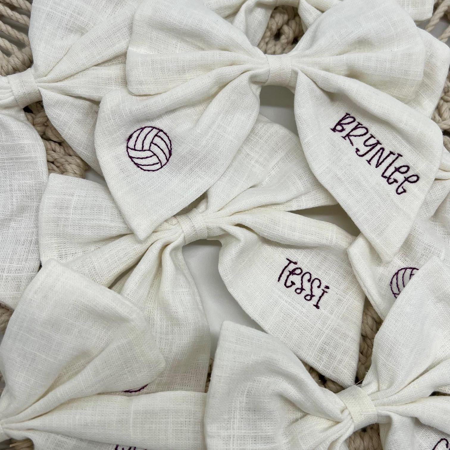 This listing is for a set of Volleyball Team Personalized Linen Hair Bow with Name.
